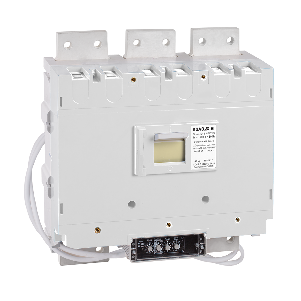 Выключатель автоматический ВА55-43-341816-1600А-690AC-НР230AC/220DC-УХЛ3-КЭАЗ предназначен для защиты электрических систем и оборудования, в том числе трансформаторов и генераторных установок. Этот выключатель обладает номинальным рабочим напряжением 690 В переменного тока и способен переключать нагрузку до 1600 А, обеспечивая надежную защиту даже в условиях высоких температурных отклонений (-50°С до +55°С). Предельная коммутационная способность выключателя составляет 33,5 кА при 690 В и 80 кА при 400 В переменного тока, что гарантирует его эффективное использование в различных системах электроснабжения.