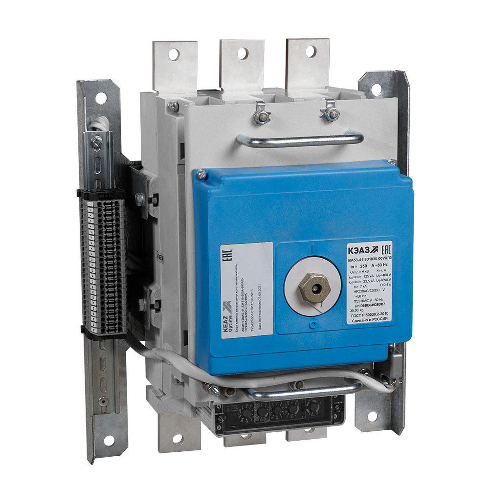 Блок замены автоматического выключателя АВМ4Н-ВА53-41-331830-250А-690AC-НР230AC/220DC-ПЭ230AC – это надежное и функциональное устройство, разработанное для защиты трансформаторов и генераторных установок. С номинальным током 250 А и предельной коммутационной способностью переменного тока 33,5 кА, этот выключатель обеспечивает высокий уровень безопасности при работе с электрическими системами. Устройство оснащено электронными расцепителями, что позволяет точно контролировать работу системы и быстро реагировать на возможные опасности.