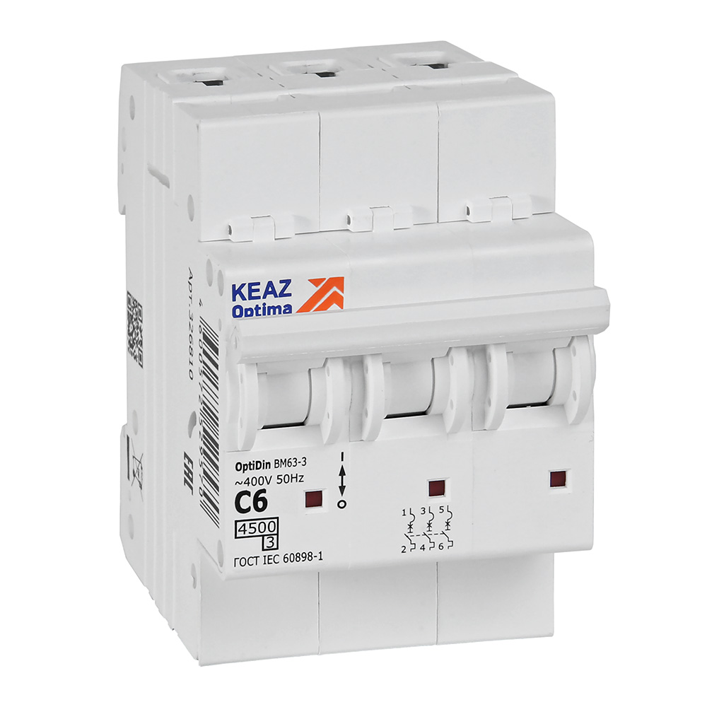 Выключатель автоматический модульный OptiDin BM63-3C6-4,5-УХЛ3 - надежное решение для защиты электрических сетей с номинальным током 6А и предельной коммутационной способностью 4,5 кА. Изделие оснащено тепловым и электромагнитным расцепителями, что обеспечивает эффективную защиту от сверхтоков и коротких замыканий. Выключатель имеет степень защиты IP20 и климатическое исполнение УХЛ3, позволяющее эксплуатировать его в широком диапазоне температур от -70 до +60°C. Сечение присоединяемых проводов может достигать 25 мм², что обеспечивает надежное соединение с электропроводкой. Установка осуществляется на DIN-рейку, ширина изделия составляет 3 модуля (160 мм), высота - 85 мм и глубина - 73,7 мм. Выключатель предназначен для стационарного монтажа в сетях переменного тока частотой 50 Гц с номинальным напряжением 400 В. Степень загрязнения окружающей среды - 2, что позволяет использовать его в помещениях с различными условиями эксплуатации. Выключатель включен в реестр промышленной продукции РФ и соответствует стандарту EN 60898.